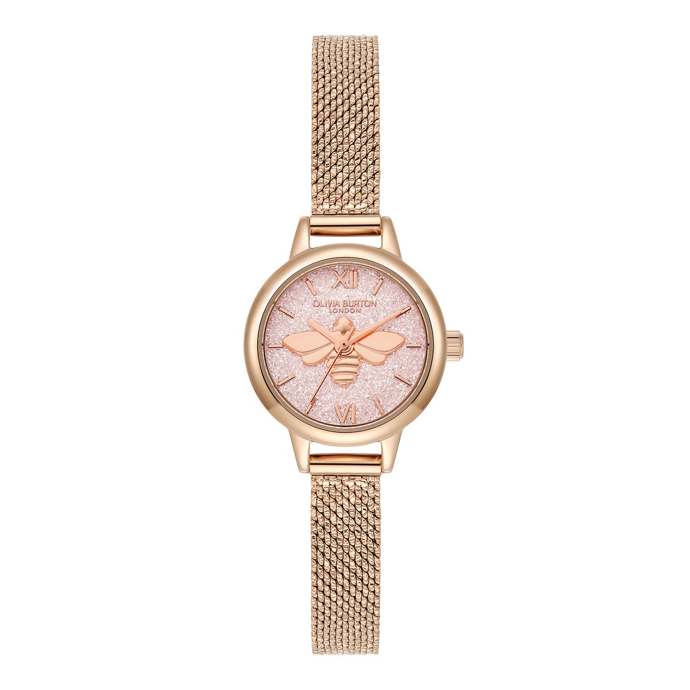 春の訪れとともに、新しい始まりに幸運をもたらす「ラッキービーコレクション」。グリッターが美しく輝く文字盤には、オリビア・バートンの象徴的な蜂モチーフが繊細なエッチングで表現され、上品な華やかさをプラスしています。
