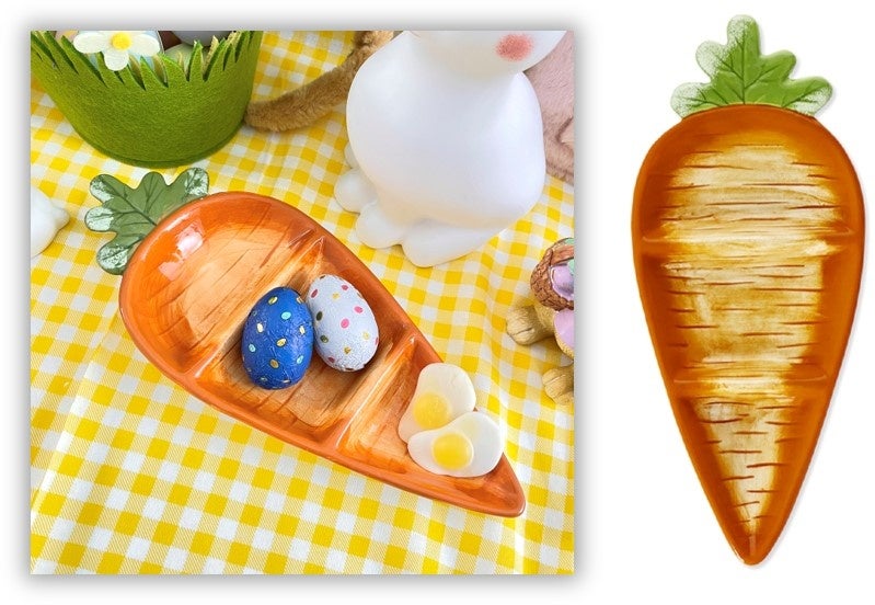 にんじんそのまんま!のプレートは、表面が3つに区切られているので、お料理やお菓子を分けて置ける!使い勝手抜群。そのまま置いても♡