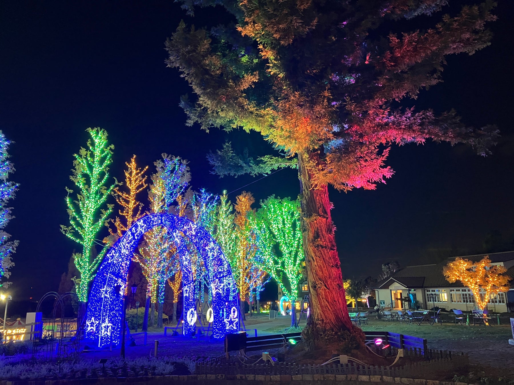 大阪・堺市にある体験型農業公園「堺・緑のミュージアム ハーベストの丘」は、季節のお花や動物とのふれあい、遊具に体験教室、堺産グルメなどを楽しめる緑のミュージアムです。冬のイルミネーションは4年目を迎え、昨年よりさらにエリアを拡大して開催中です。体験型の演出や30分に1度の約5分間の光のショーなど、大人も子供も楽しめるイベントとなっています。