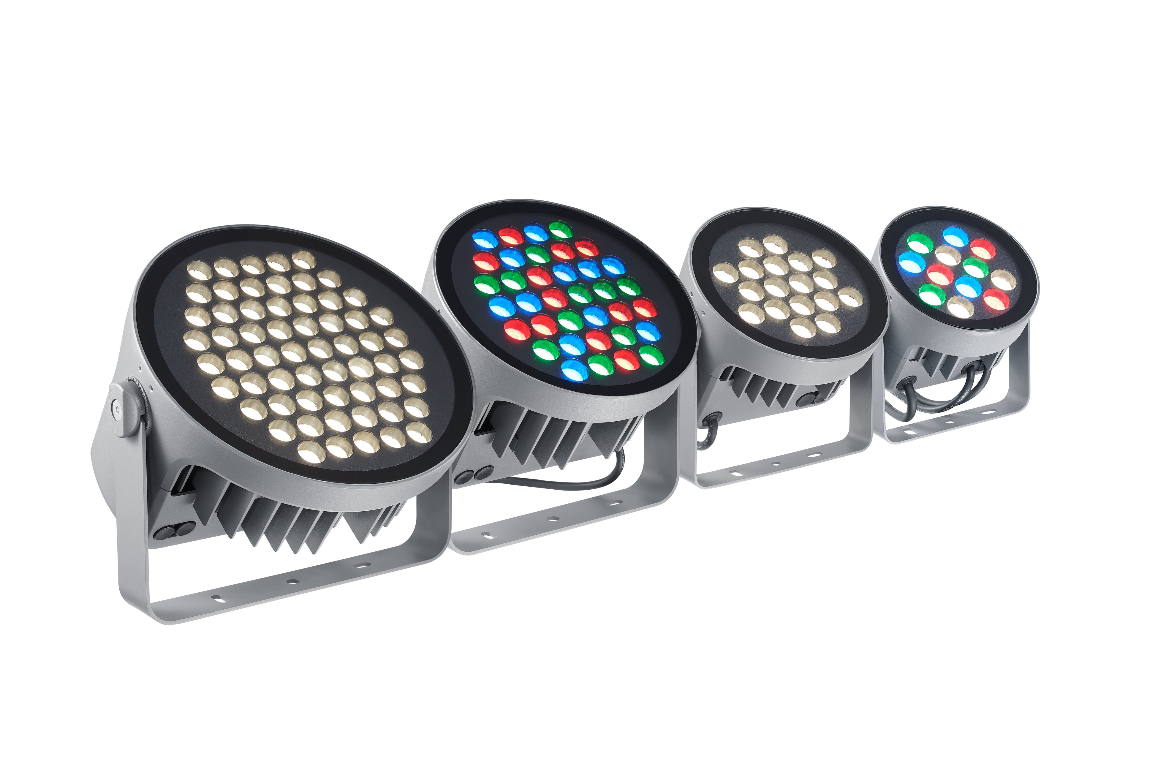 Uni Flood C Proは、小型から大型まで幅広いサイズ展開を備え、さまざまな設置環境や用途に柔軟に対応可能なカラーLED投光器です。防水・防塵性能 IP66、耐衝撃性能 IK06 を備え、屋内外を問わず高い信頼性を発揮します。