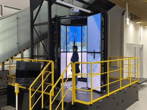 360度自分の足で歩き回れるVR装置で、仮想空間内に再現された柏センターを探検してみよう。