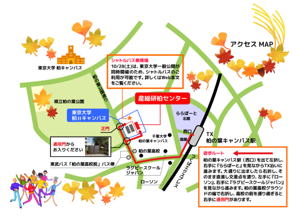 ※10月28日は、東京大学柏キャンパス一般公開の同日開催により、東大柏キャンパスと東大柏Ⅱキャンパス間の無料シャトルバスが運行されます。