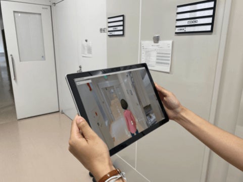 タブレットで仮想空間内に再現された柏センターを探検してみよう!現実には見えないゴーストがいるかも?