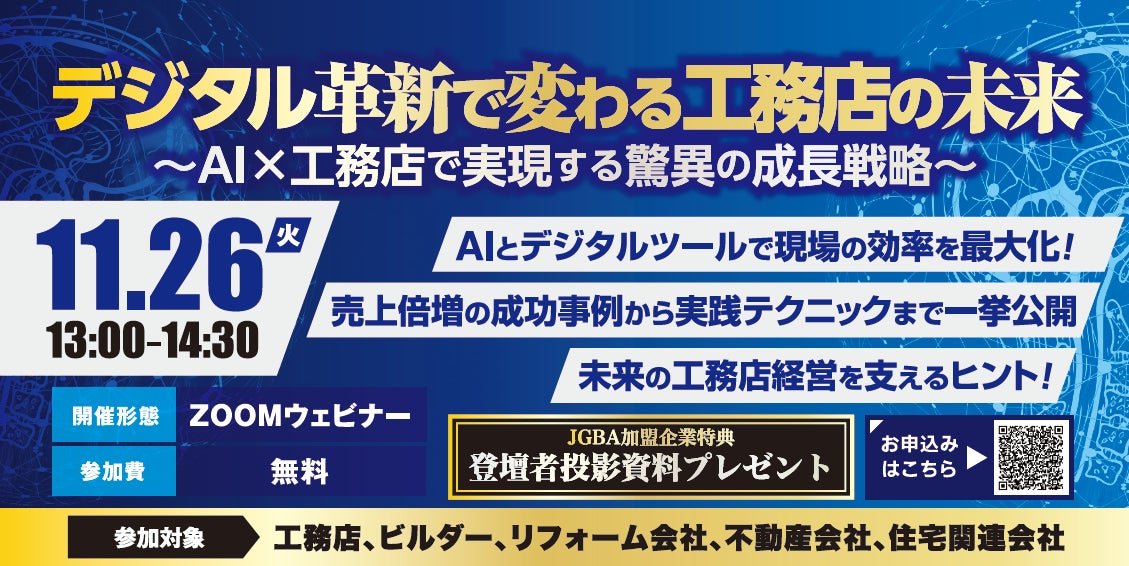 イベント名:JGBA「デジタル革新で変わる工務店の未来~AI×工務店で実現する驚異の成長戦略~」