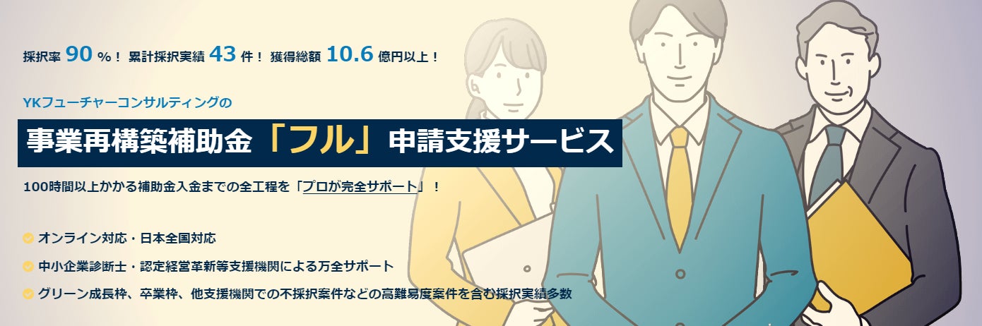 第12回公募回にも対応!YKFCが事業再構築補助金「フル」申請支援サービスを提供します。