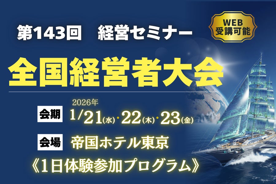 第143回「新春全国経営者大会」―初の《1日体験参加プログラム》を先着30名限定で受付開始!全国の経営者との交流・ビジネス展開を後押しする特別企画