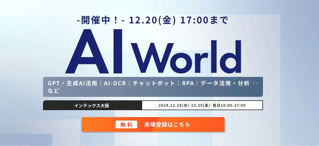株式会社デジライズ(本社:東京都港区、代表取締役:茶圓 将裕)は、2024年12月18日(水)から12月20日(金)までインテックス大阪で開催される「AI World 2024 大阪 冬」に出展いたします。当社は、企業のAI活用を支援する「法人リスキリング®」を主力サービスに、AI導入から活用、定着までをワンストップで支援しています。