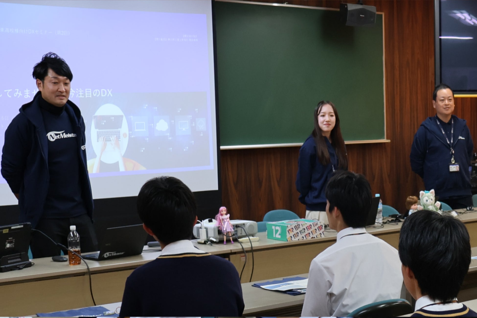 当社は、DXに貢献する企業向けクラウドサービス「NetMeister Suite(ネットマイスター スイート)」(注3)を展開するなど、さまざまな業界におけるDX導入支援の実績があります。また、静岡県掛川市に掛川事業所を有しているご縁から、昨年度に引き続き、当社による富士東高等学校の生徒向けにDXセミナーを開催する運びとなりました。