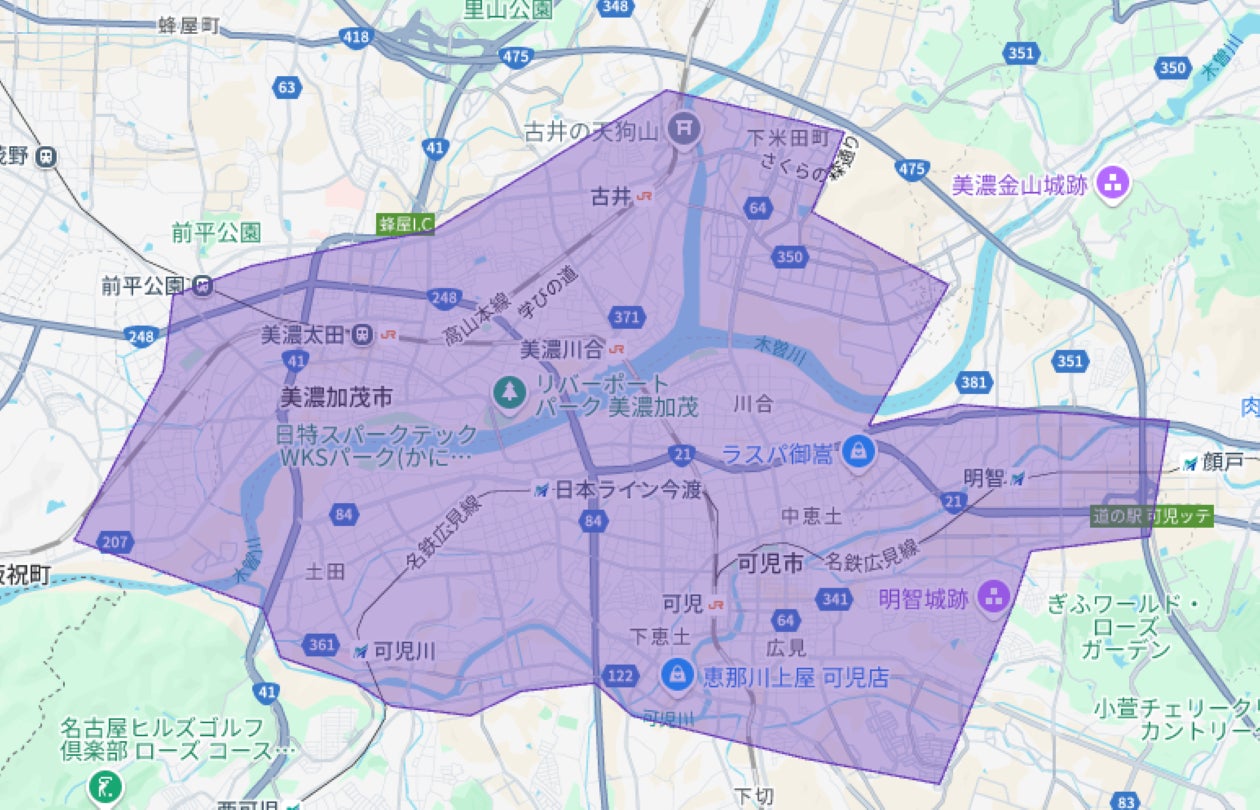 岐阜県:大垣市、多治見市、可児市、美濃加茂市、関市