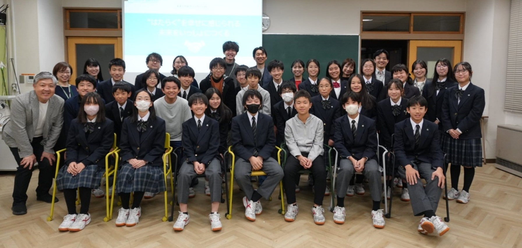 「はたらいて、笑おう。」をビジョンに掲げるパーソルグループのパーソルワークスイッチコンサルティング株式会社(本社:東京都千代田区、代表取締役社長:小野 隆正、以下「パーソルワークスイッチコンサルティング」)は、この度、未来の“はたらくWell-being”を共に考え、応援する、日本全国の中高生向け新プロジェクト「未来の“はたらく”学級プロジェクト」を、2025年12月10日(水)に東京学芸大学附属竹早中学校Dプロジェクトと共同で開催しました。開催後のアンケートでは、イベントを通じて「はたらく未来への期待度」が高まった生徒は100%というポジティブな変化を生み出しました。