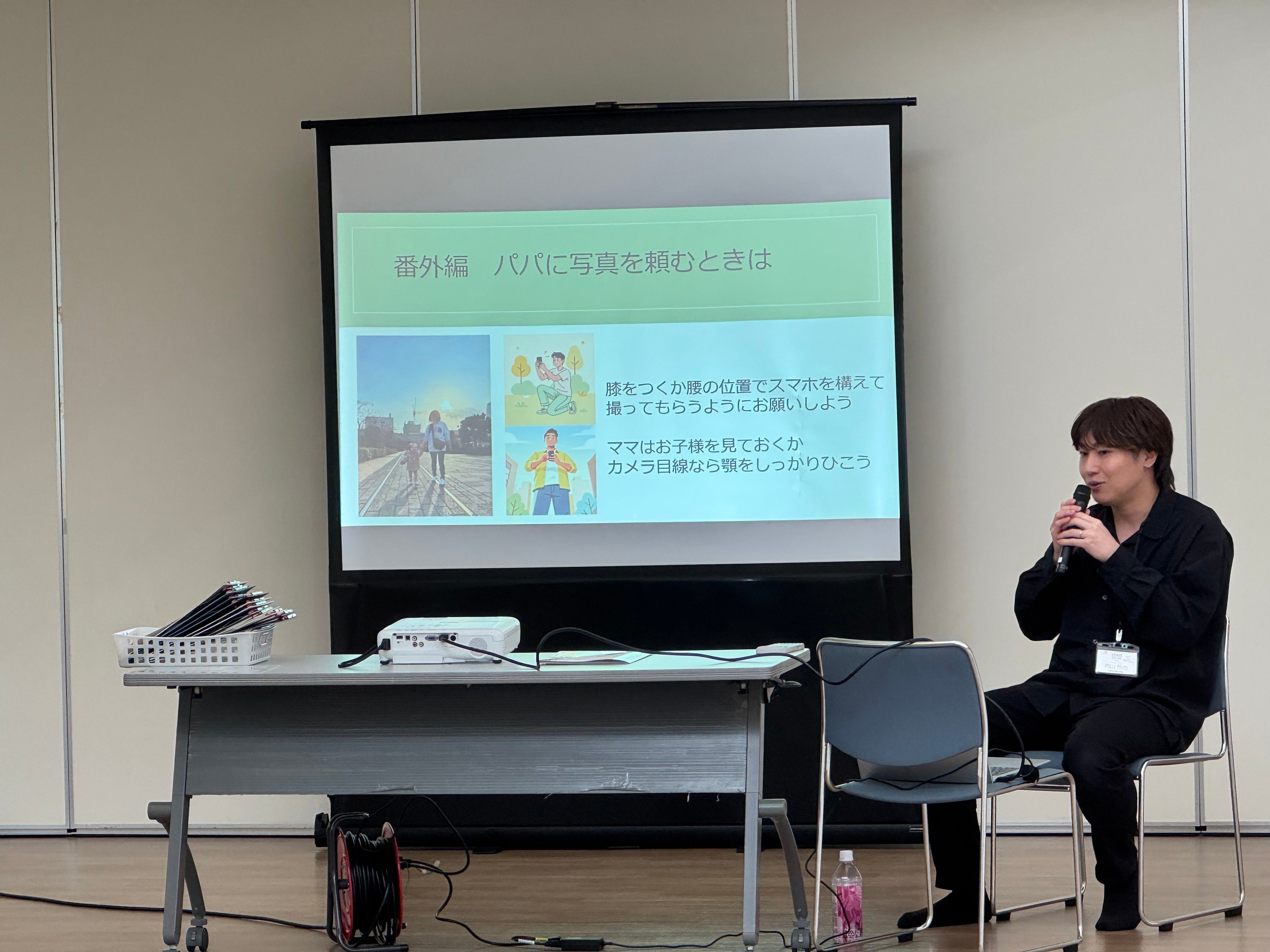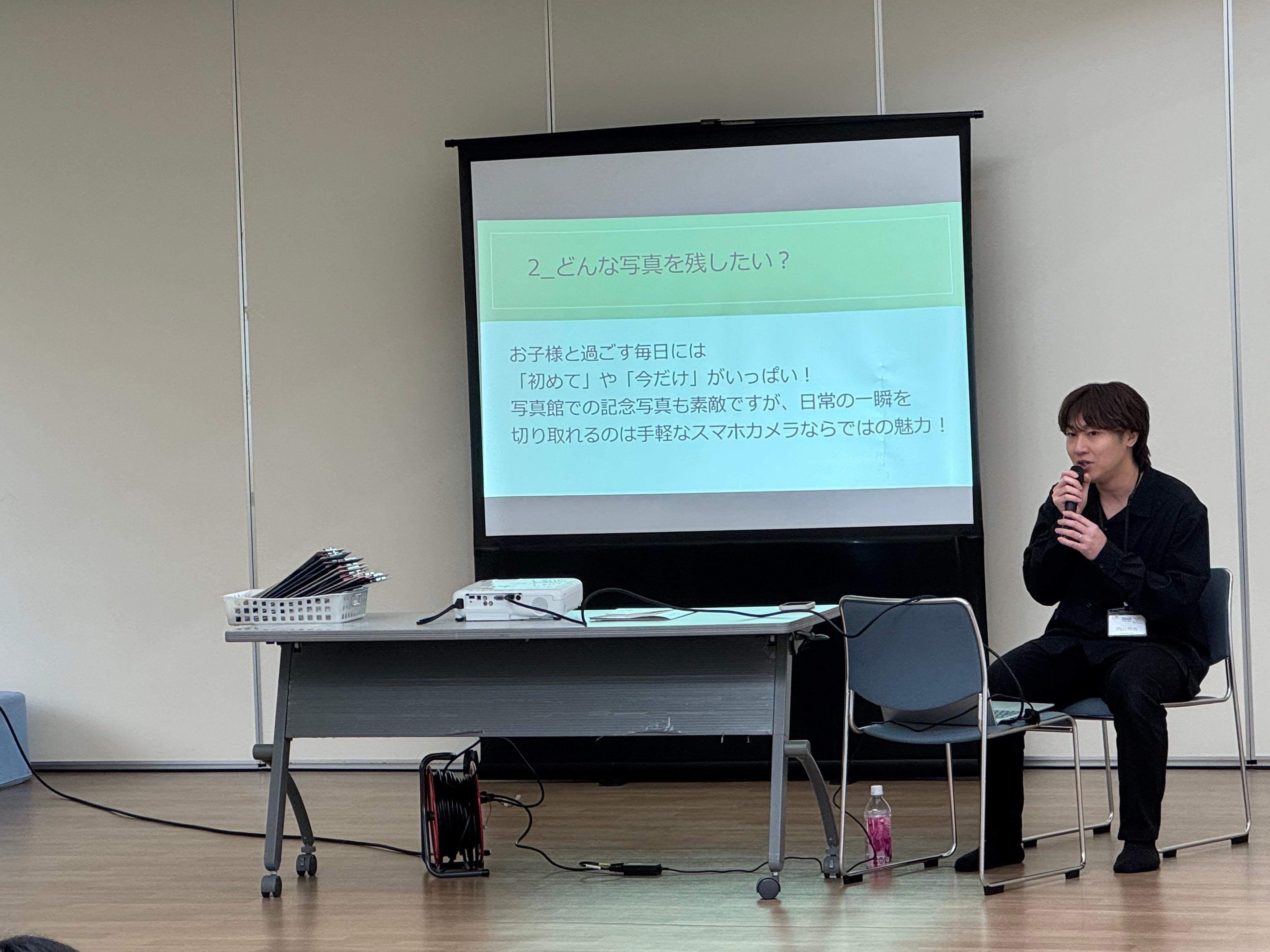 東海地方で25店舗のフォトスタジオを運営する株式会社タートル(本社:愛知県春日井市、代表取締役社長:亀山直樹)は、2026年1月27日(火)、春日井市こども未来部 子育て子育ち総合支援館(かすがいげんきっ子センター)にて、春日井市の未就園児(0〜3歳ごろ)の親子を対象としたスマホカメラ講座を開催しました。当日は、育児休業を経験した男性のプロカメラマンが講師を務め、スマホでよりお子さまの「らしさ」を引き出すためのコツをお伝えしました。