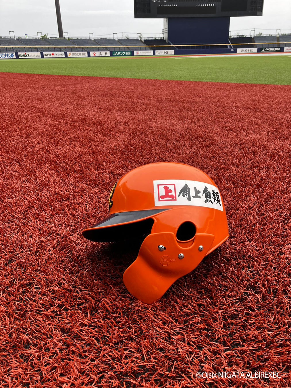スポンサー契約締結に基づいて引き続き、オイシックス新潟アルビレックスBCヘルメット左サイドに角上魚類のロゴを掲出して頂きます。