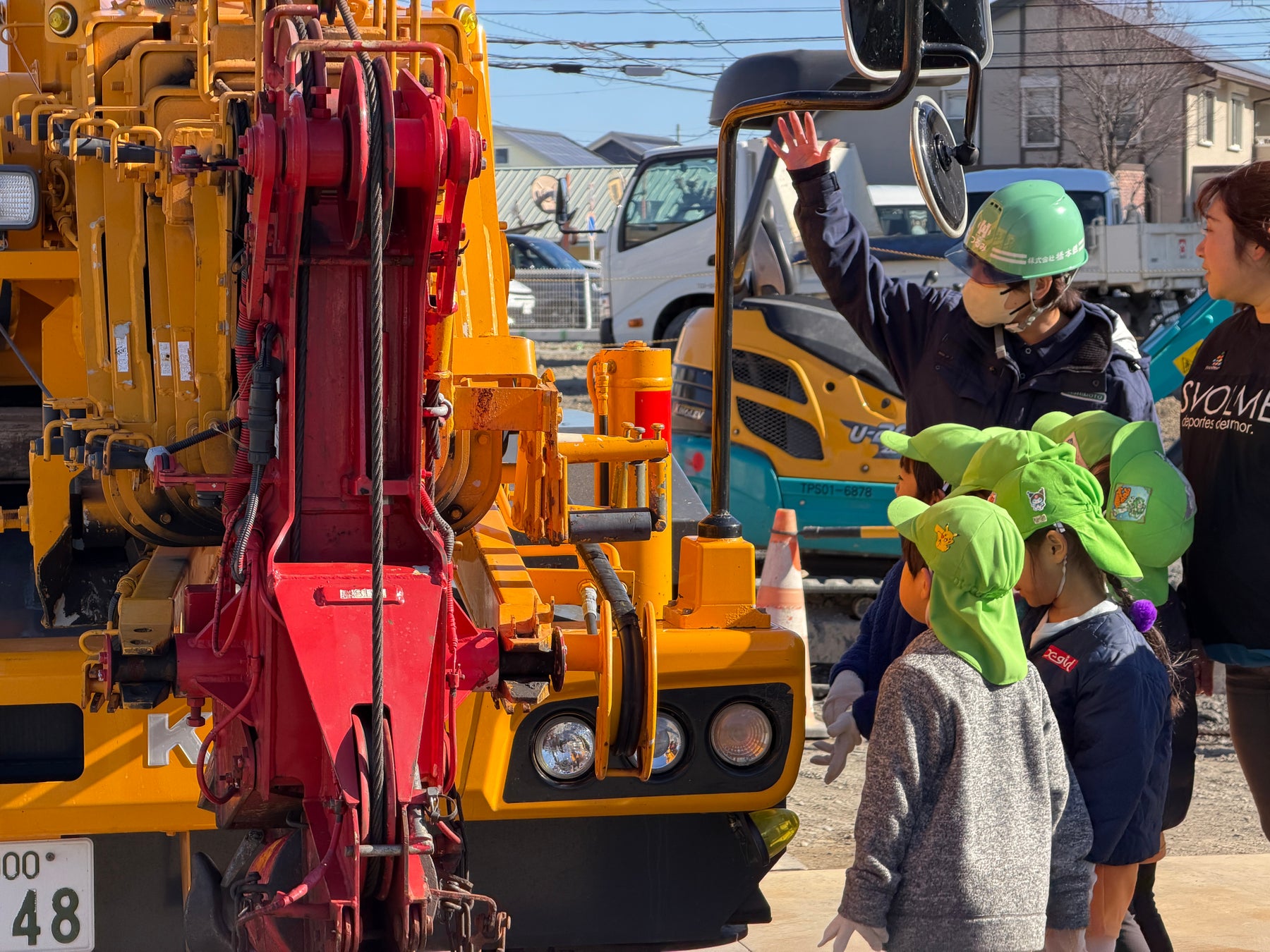園児たちは、重機に触れ、レバーを動かし、普段は遠くから眺めるだけの現場を間近に体験しました。
