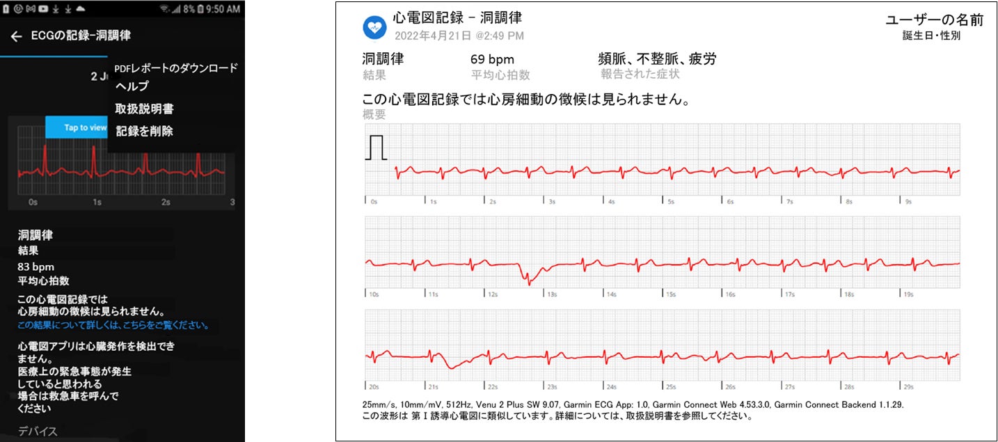 本アプリケーションにより、Garminウェアラブルウォッチでの心電図の記録・確認が可能となります。