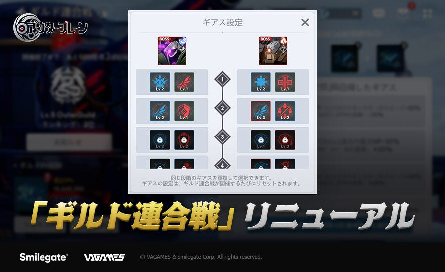 新しいギルド連合戦は、「ギアス守護者」とメインボスを同時に退治する従来の方式から順次討伐する方式に調整され、ギルドメンバー間の協力プレイを強化しました。さらに、デイリー参加報酬とポイント達成報酬が強化され、MVP報酬も追加されました。
