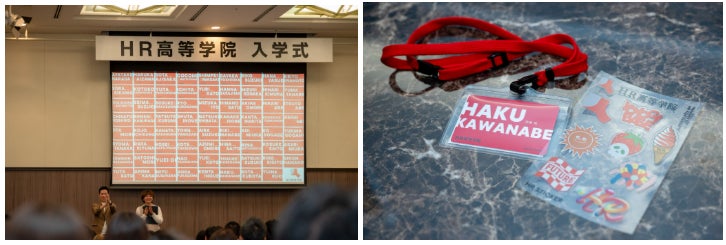 HR高等学院を運営するメンバーの自己紹介では、各々の言葉で、学生の皆さんへの想いを伝えました。式典の最後に、一期生の71名の名前が呼ばれ、挨拶しました。緊張している様子の学生、笑顔でワクワクした気持ちがあふれている学生など、入学したことに喜びを感じている様子が伝わりました。この日は、「一人ひとり違うこと、自分らしい一歩を大切にしてほしい」という願いが込められた、全員少しずつ違うデザインのオリジナルの学生証が手渡されました。