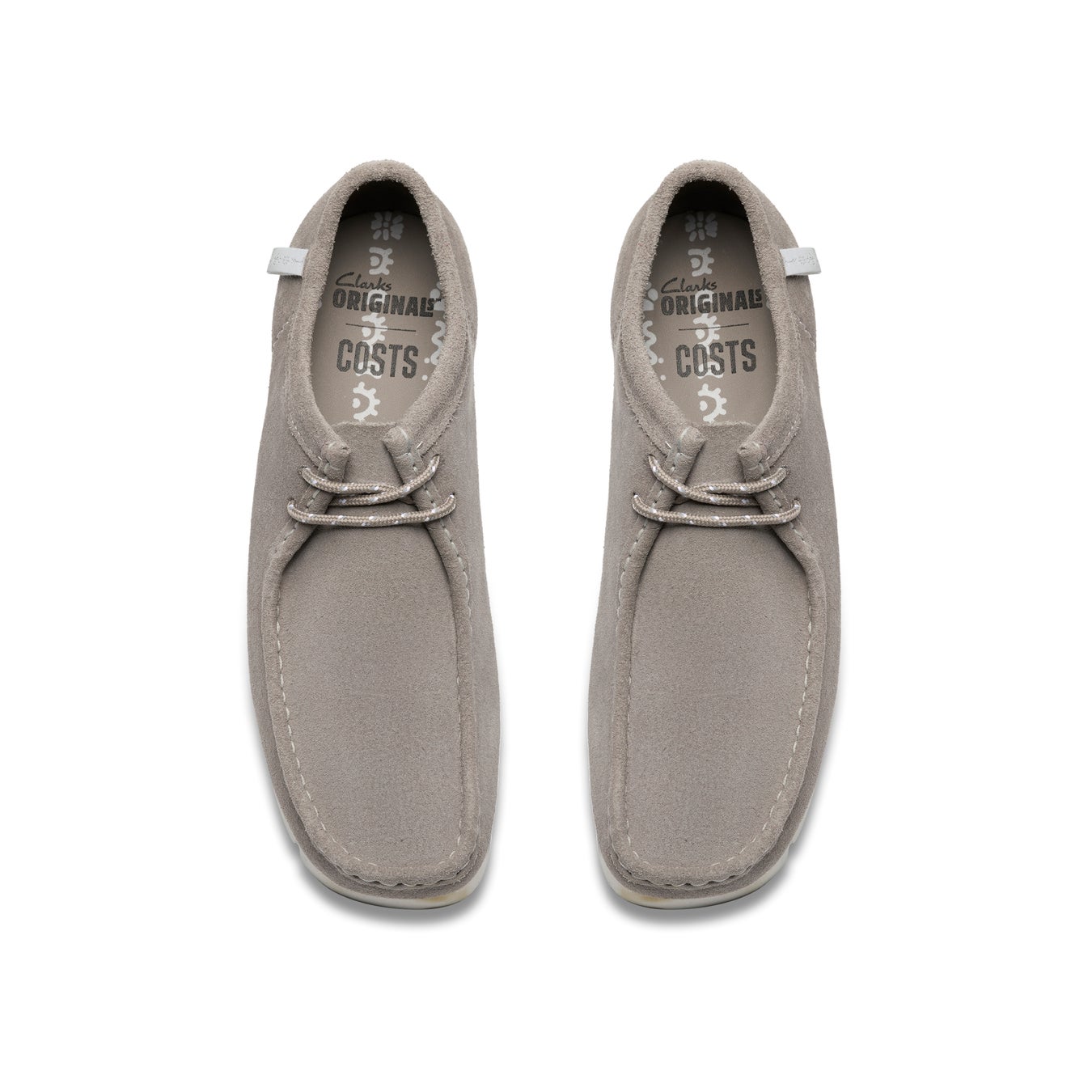 アイコニックな Wallabee(ワラビー) をベースに、グレーのスエードでまとめたミニマルなデザイン。アッパーには“未来の部族”を思わせる抽象的なトライバルモチーフがあしらわれ、ヒールタブやチャームには 3Mリフレクティブ素材 を使用。光を受けて輝くディテールが、探求心や冒険を象徴しています。さらに、COSTSらしいシンボリックな織りラベルやパッケージ、コラボ専用タグなど、細部までこだわりが詰まった仕様に。アウトソールには Vibramソール を採用し、日常からアウトドアまで対応する快適な履き心地を実現しました。