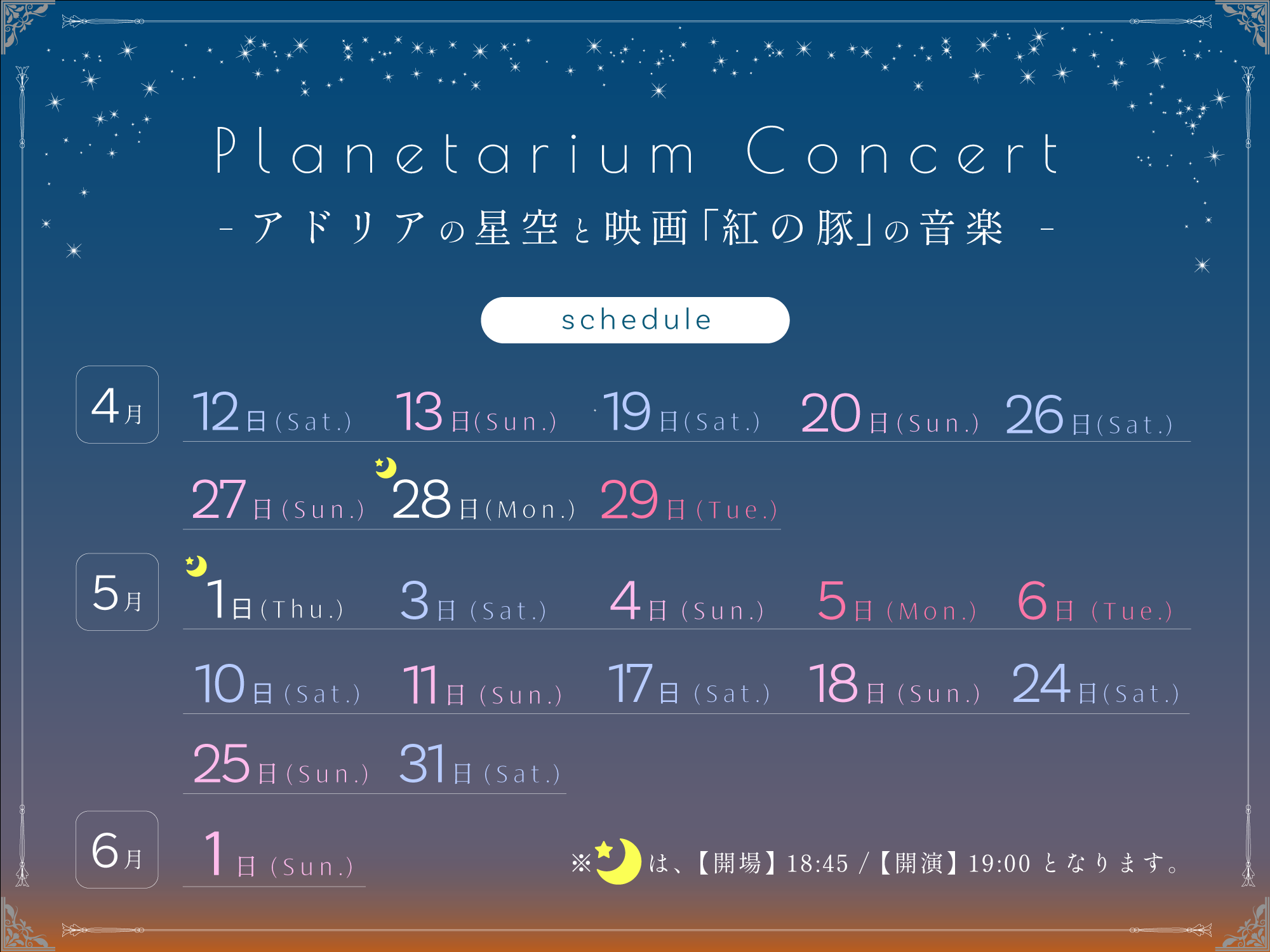 2025年4月12日(土)~6月1日(日)の期間、『Planetarium Concert -アドリアの星空と映画「紅の豚」の音楽-』の特別延長公演が決定しました。