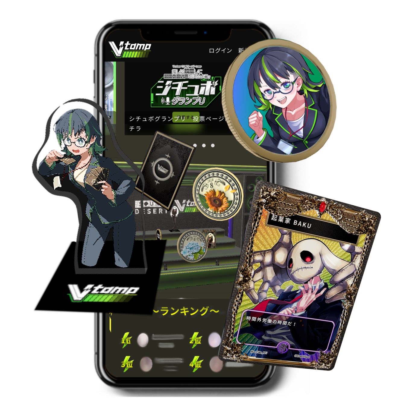V-tampは、クロスビジョンが運営する「デジタル推し活グッズ」の販売サービスです。イラスト・ボイス・音楽などを3Dモデルとして販売し、在庫‧物流コストをかけないグッズ展開が可能です。