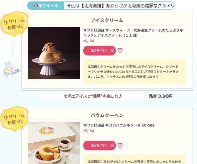 あるるのオリジナルキャラクター「あるうさ」が、決められたおこづかいを持って各地を旅し、地域にまつわるアイテムを楽しく紹介していきます。