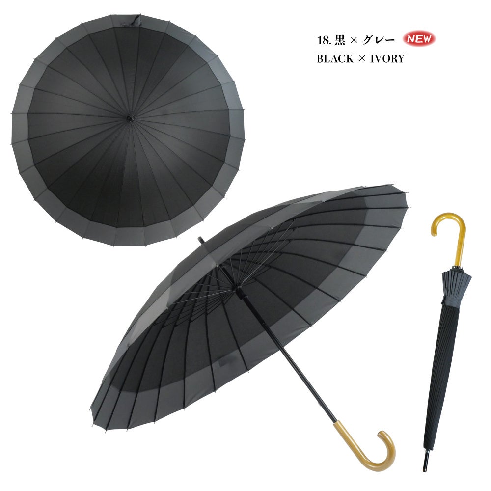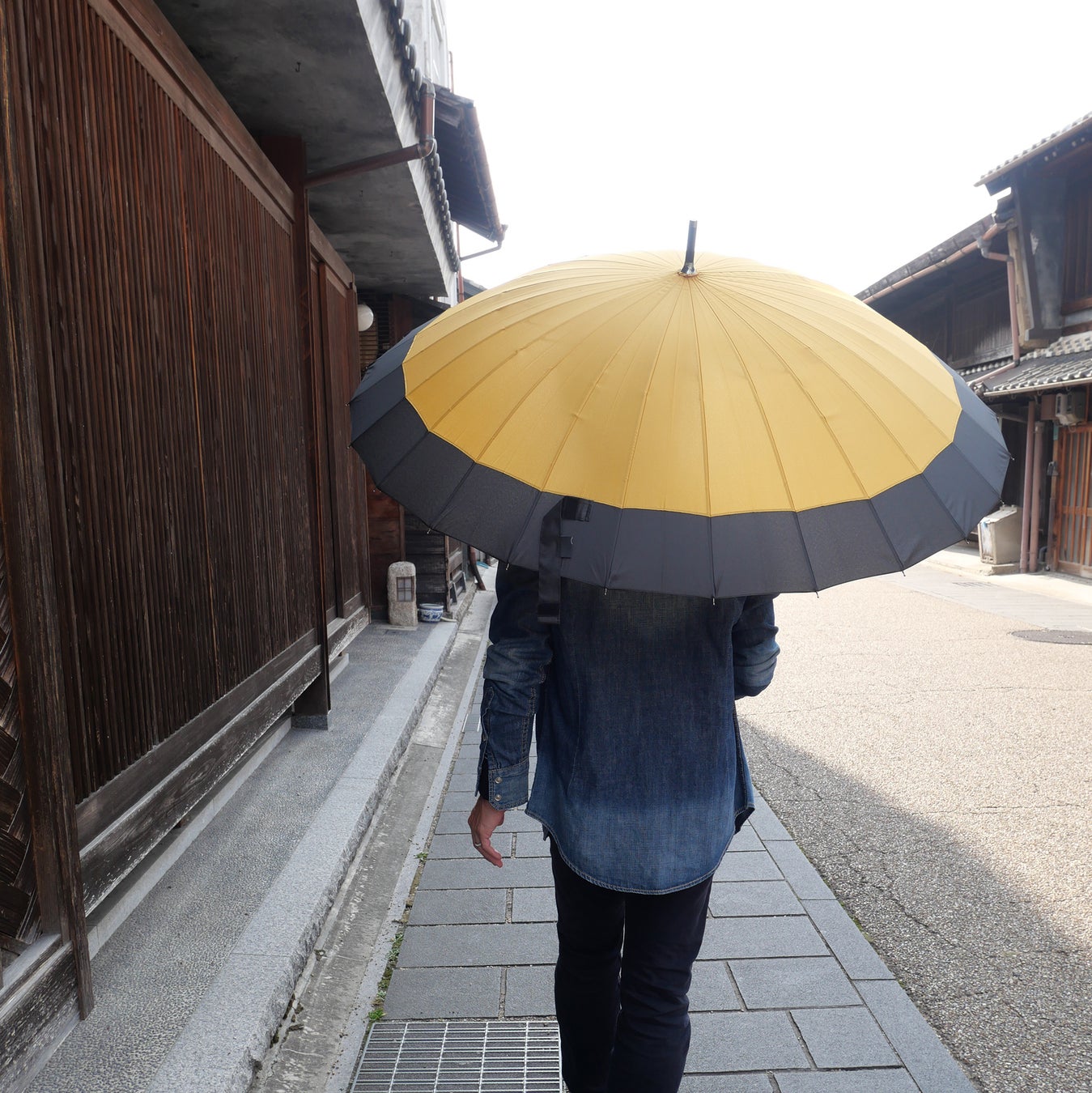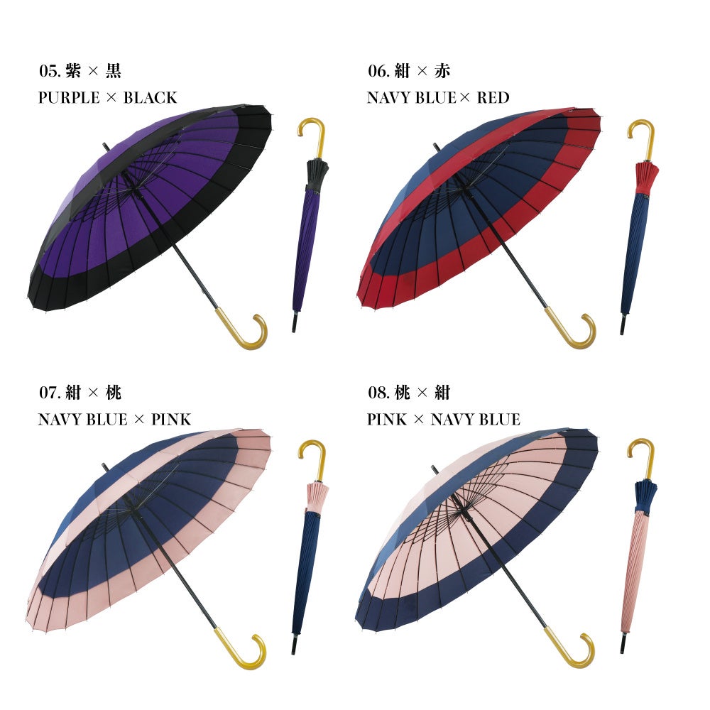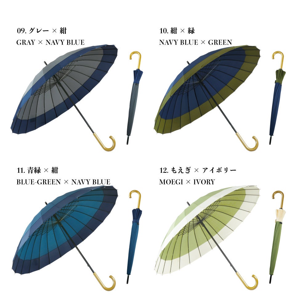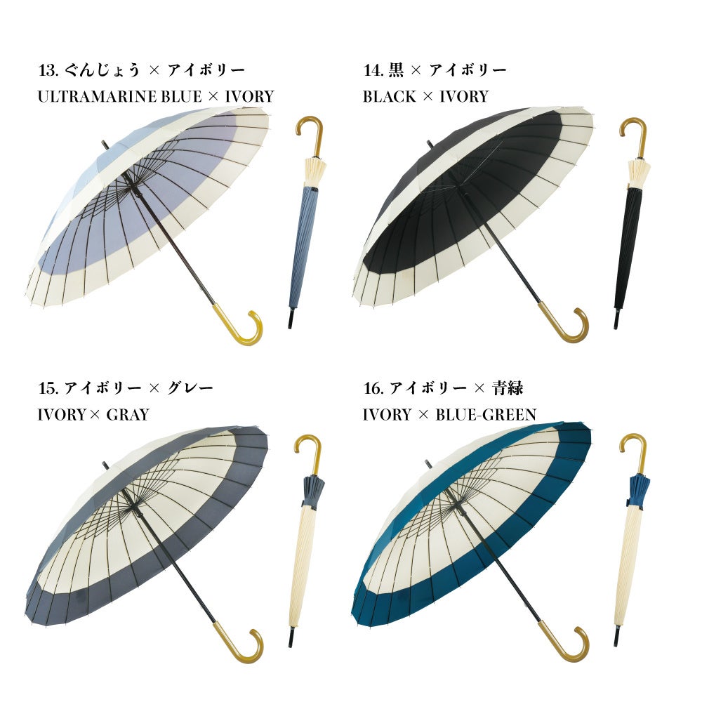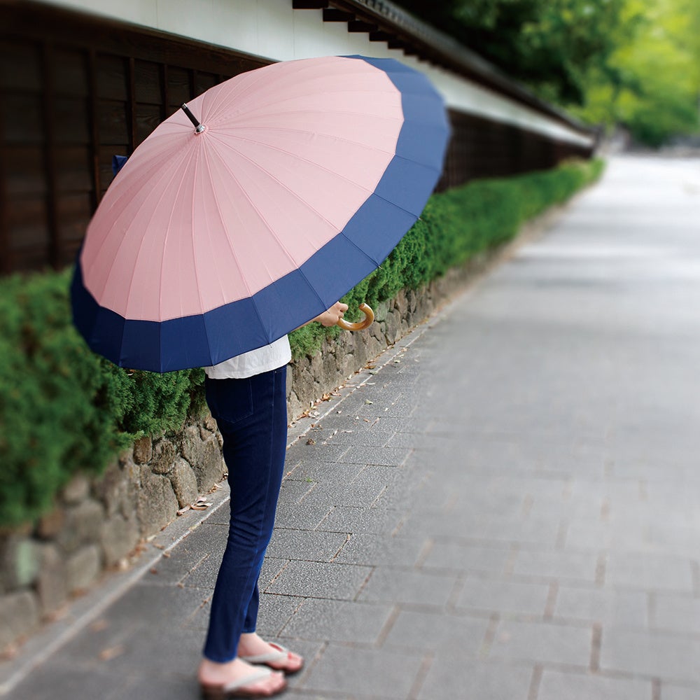 24本骨ならではの丸みのあるシルエットが美しく、着物や浴衣などの和装はもちろん、ジーンズなどのカジュアルなコーディネートにも似合う傘です。