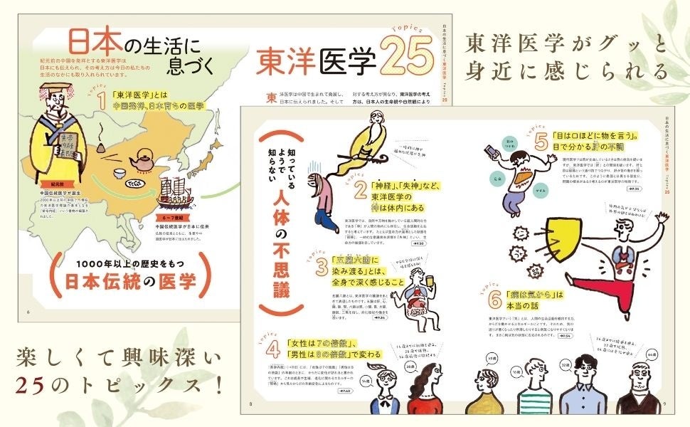 「日本の生活に息づく東洋医学Topics25」や「食薬・ツボ図鑑」など、心と身体を整えるためのヒントが満載!