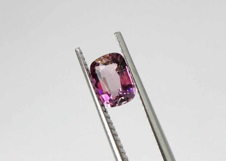 ポードレッタイトのほとんどがカラーレス、淡いピンク、パープリッシュピンクを持ち、市場に流通していてるピースは、ほとんどが0.1ct前後。