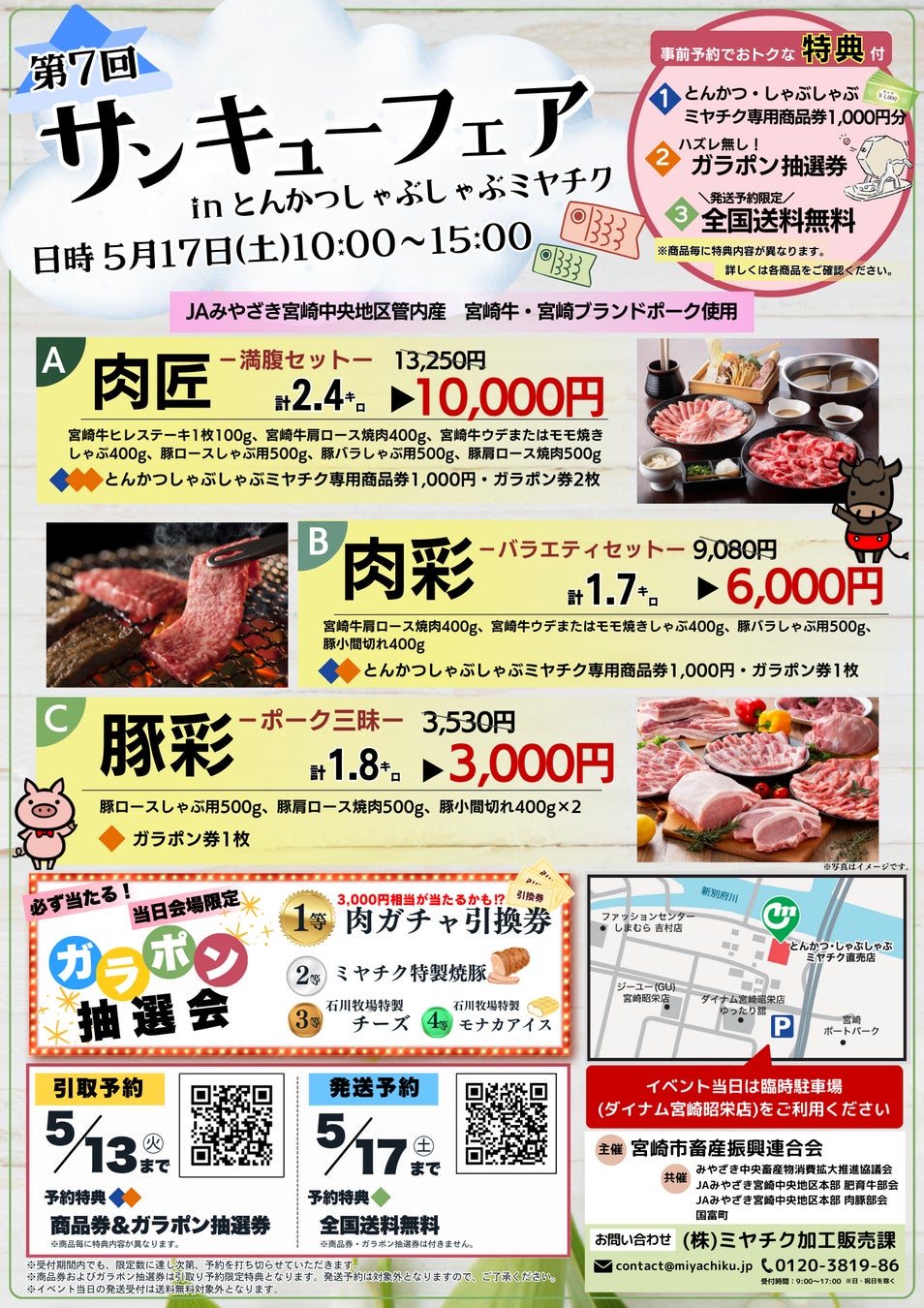 株式会社ミヤチク(本社:宮崎県都城市/代表取締役社長:船ヶ山 祐二)が運営する【とんかつしゃぶしゃぶ】にて、5月17日(土)に「第7回 サンキューフェア」が開催されます。