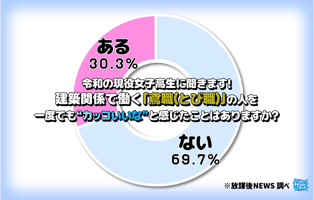 今回の調査で30.3%の女子高生が「とび職の人をカッコいいと感じたことがある」と回答。