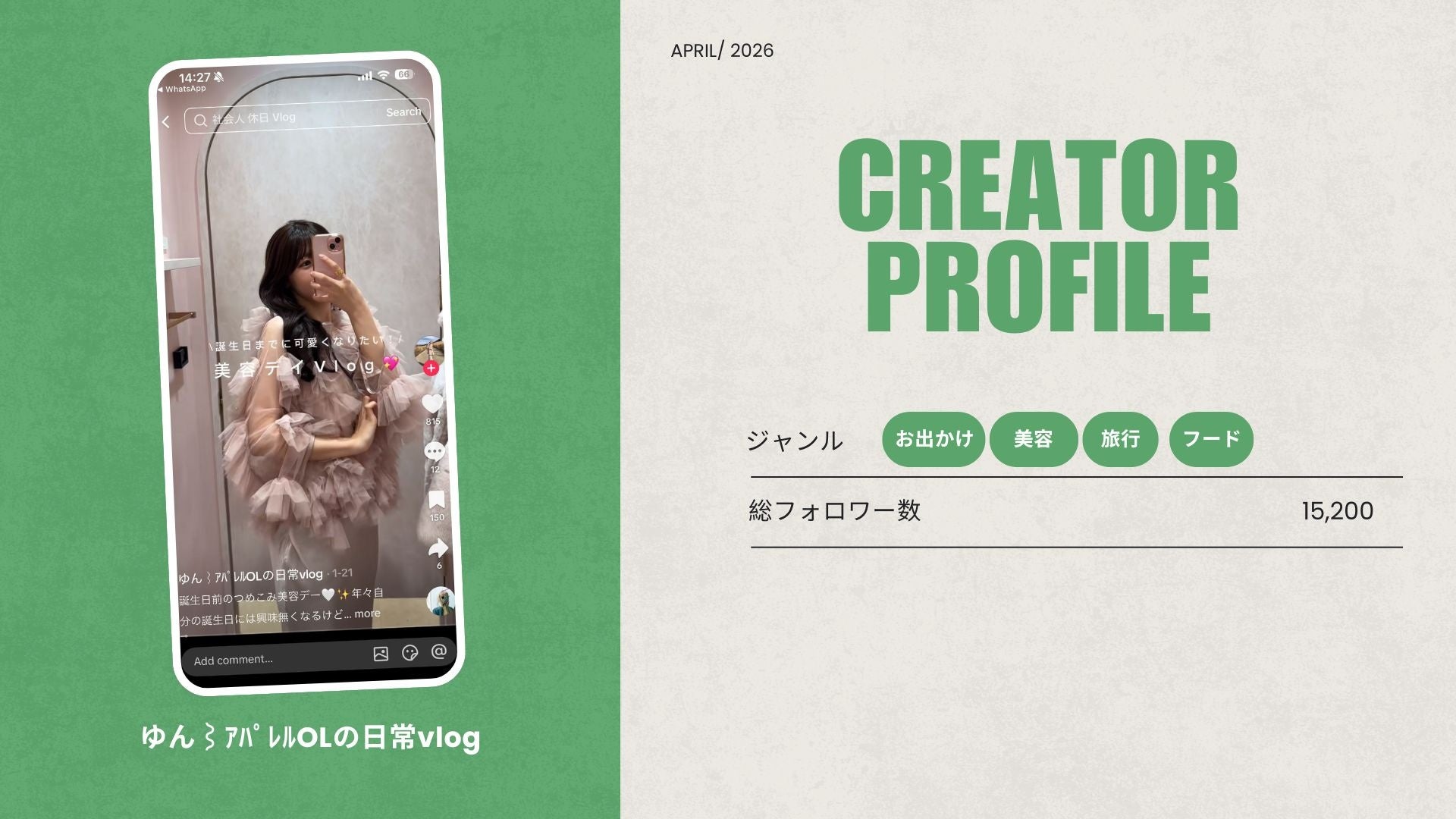 ショート動画取材班に「ゆん⌇アパレルOLの日常vlog」が新たに加盟