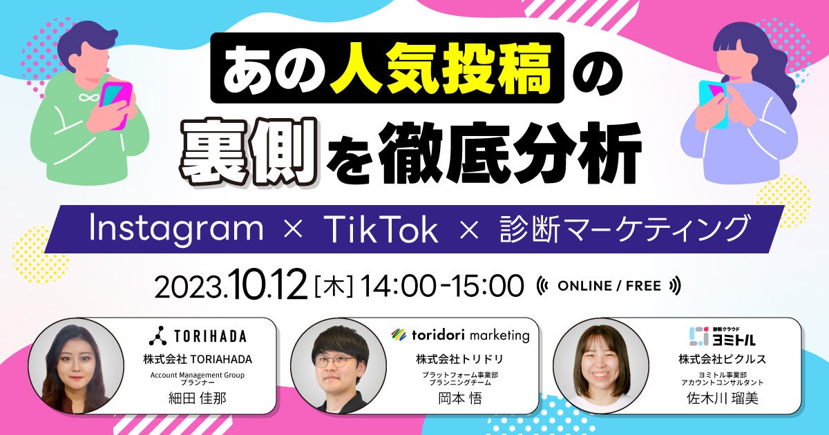 SNSマーケティングの最前線で活躍する3社が集結!Instagram、TikTok、診断マーケティングの各分野での成功事例やノウハウを一堂に学べる特別セミナーを開催します。
