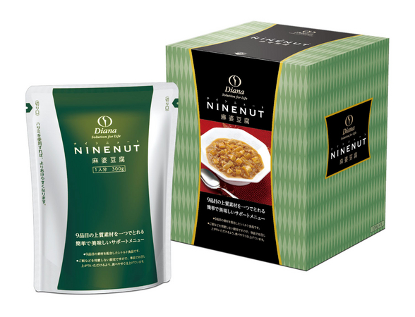 今回発売開始する「NINENUT」は、9品目(肉・魚・貝・豆類・卵・乳製品・油脂・海藻・野菜)配合のレトルトパウチ食品で、女性に人気の美味しい3メニューの「クリームシチュー・スープカレー・麻婆豆腐」をご用意しました。ご飯・パンなどの主食を添えなくても、これだけでお召し上がりいただけるように仕上げています。また、きのこ・根菜など、食感がよくかみごたえのある素材入れることで、心地のよい満腹感でダイエットをサポートします。
