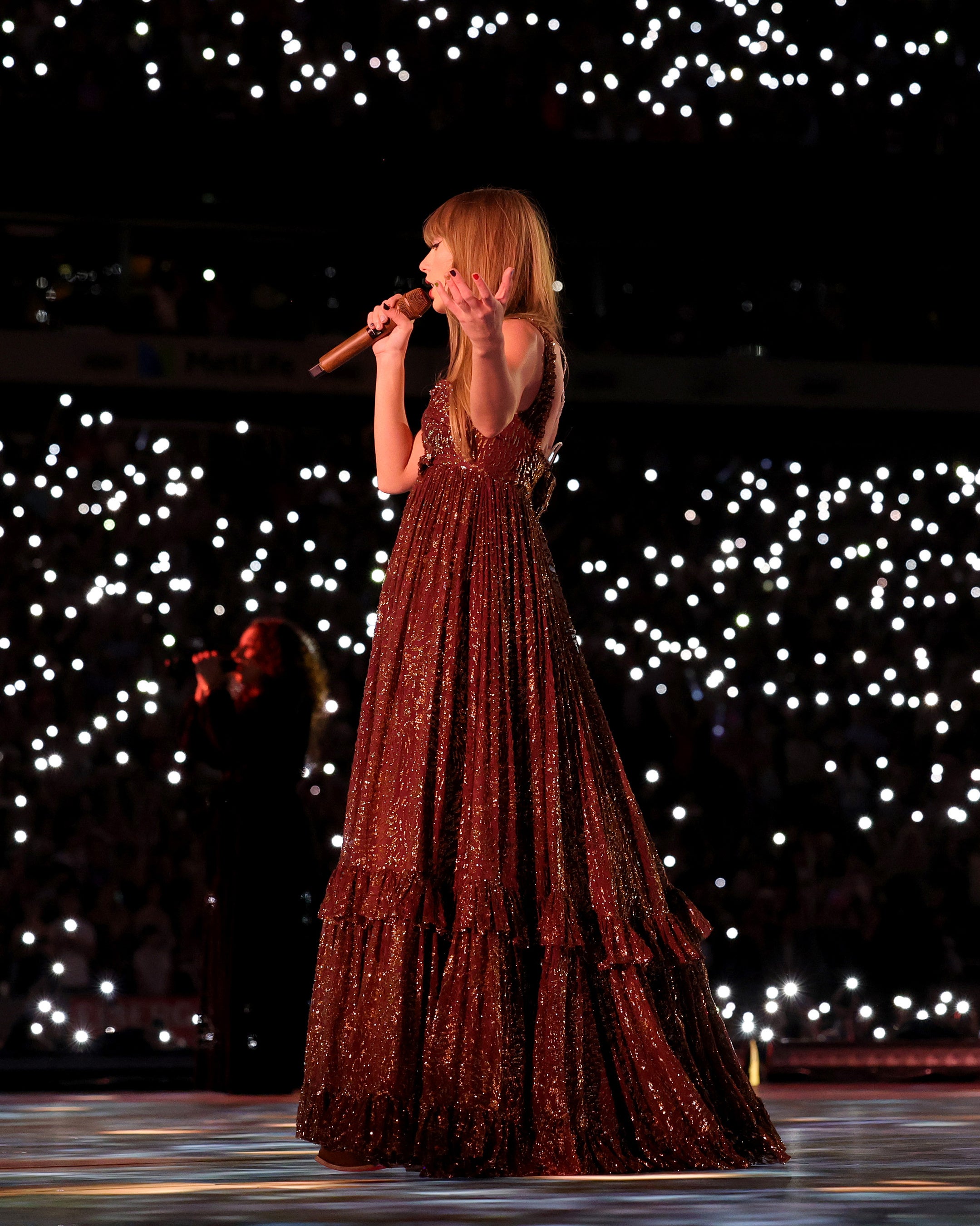 5月26日(現地時間)、アメリカ・ニュージャージー州のメットライフスタジアムにて行われた全米ツアー「THE ERAS TOUR」にて、テイラー・スウィフトが、マルコ・デ・ヴィンチェンツォによるエトロのカスタムメイドルックを纏い登場しました。