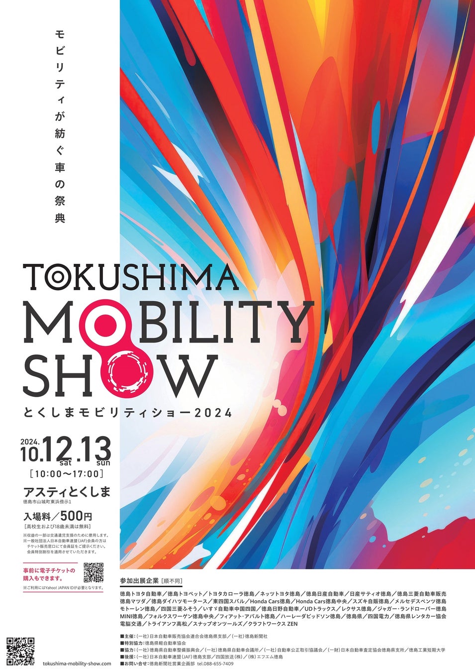 一般社団法人日本自動車販売協会連合会徳島県支部(支部長 北島義貴)と、一般社団法人 徳島新聞社(理事社長 池上治徳)は、2024年10月12日(土)・13日(日)に、アスティとくしま(徳島県徳島市)で「とくしまモビリティーショー2024」を開催します。