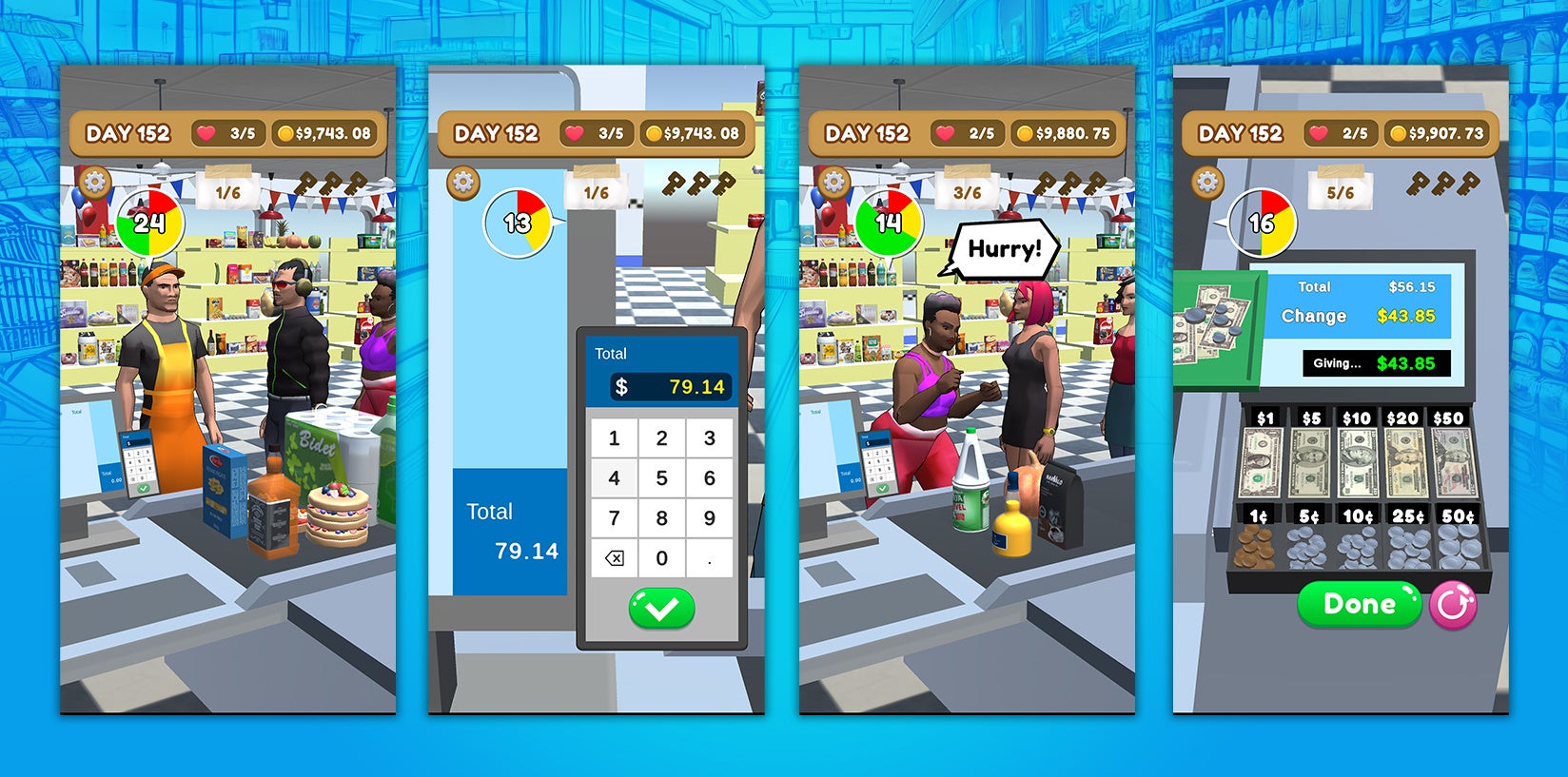 あなたはプロのレジ係として商品をスキャンして現金またはクレジットカードで支払いを担当します。より多くの顧客対応を行い自分のスーパーマーケットを成長させましょう。「Supermarket Master 3D」は世界各国のAppStoreにて配信され、多くのユーザーにダウンロードいただき、全米でランキング1位を記録しました。