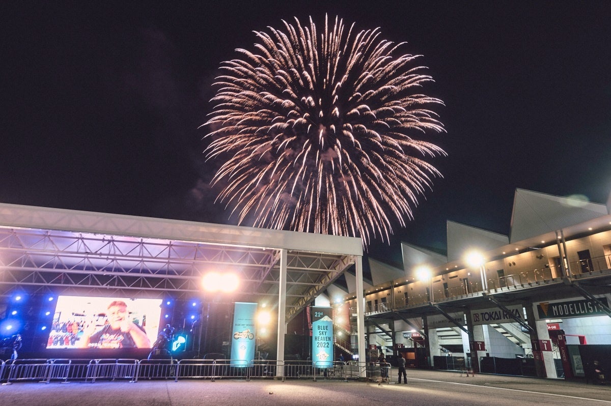 Charaのステージ終了後はフェス恒例の花火ショー「BLUE SKY FIREWORKS」で締めくくられた1日目の「BLUE SKY HEAVEN 2022」。4年ぶりの復活で、今までにない新しい試みをぎゅっと詰め込み開催されたバイクの祭典は、モーターサイクルを愛する人も初参戦の参加者も、誰もが新鮮なカルチャーの組み合わせを楽しめたフェスティバルでした。