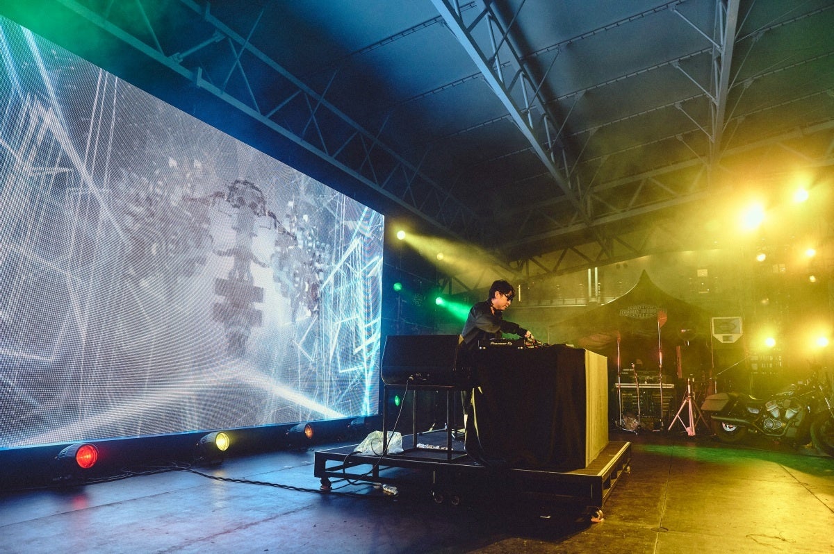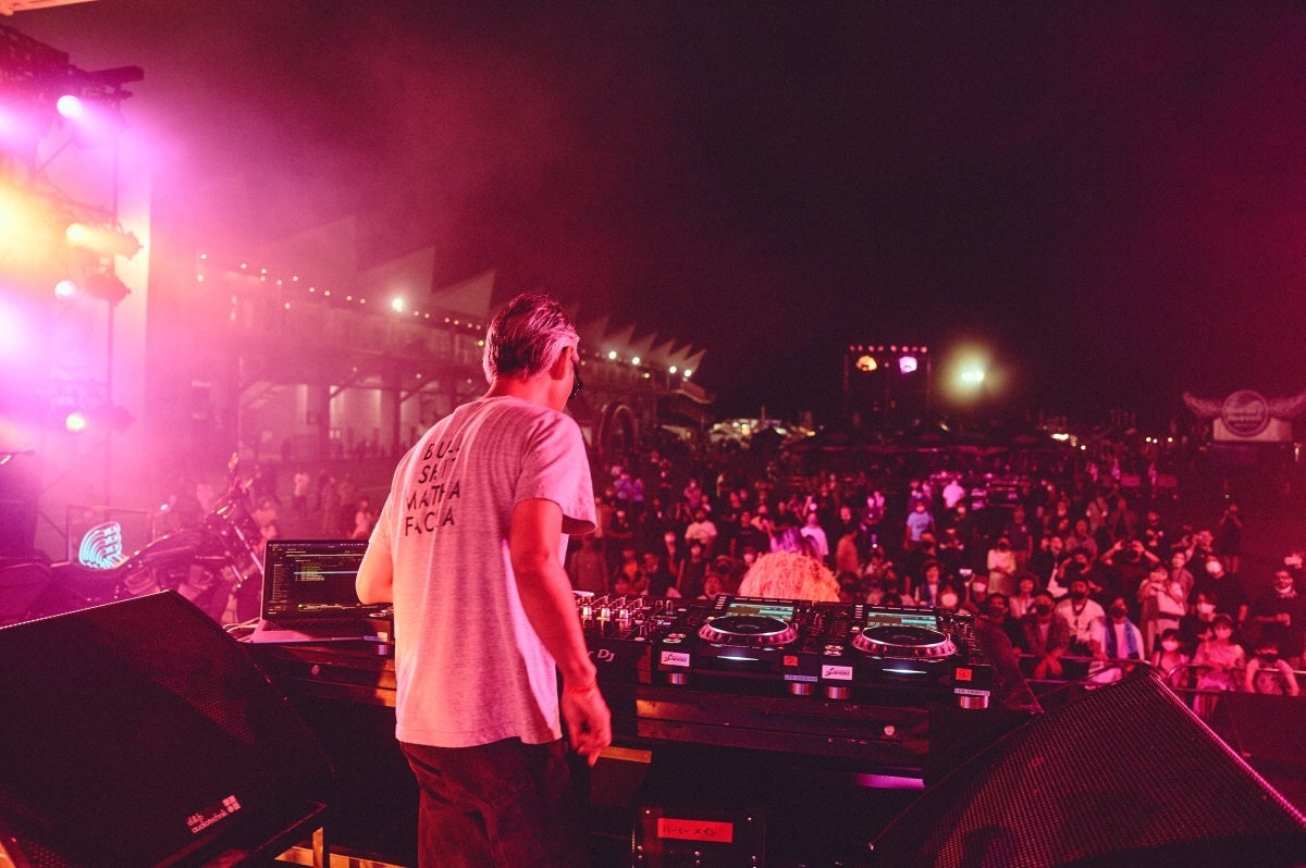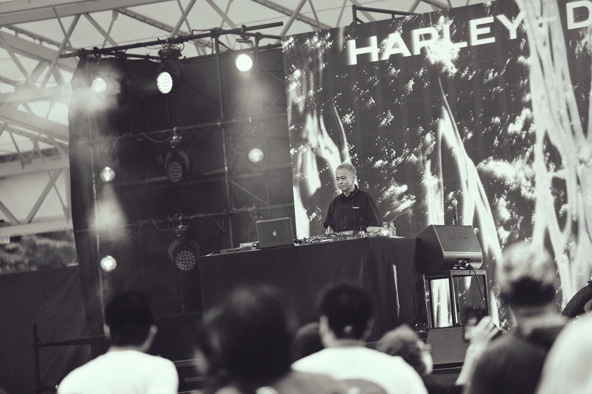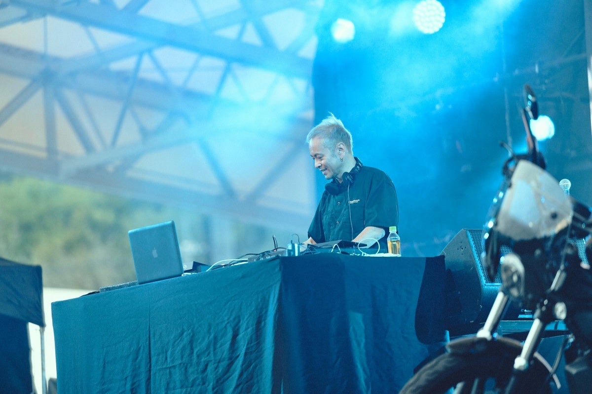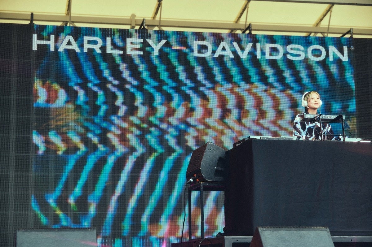 日が落ちかけてきた時間帯に登場したのは、自らもハーレーオーナーでライダーからの信頼も厚いベテランDJ、KO KIMURA。貫禄のテクノセットで会場の雰囲気を一気に掌握し、広い会場に響き渡る低音が夜に向けて観客のテンションを上げていきます。ハーレーのレザージャケットを着たライダー集団からファミリーキャンプの子どもたちまで、KO KIMURAの響かせるサウンドに体を揺らしている光景が印象的でした。