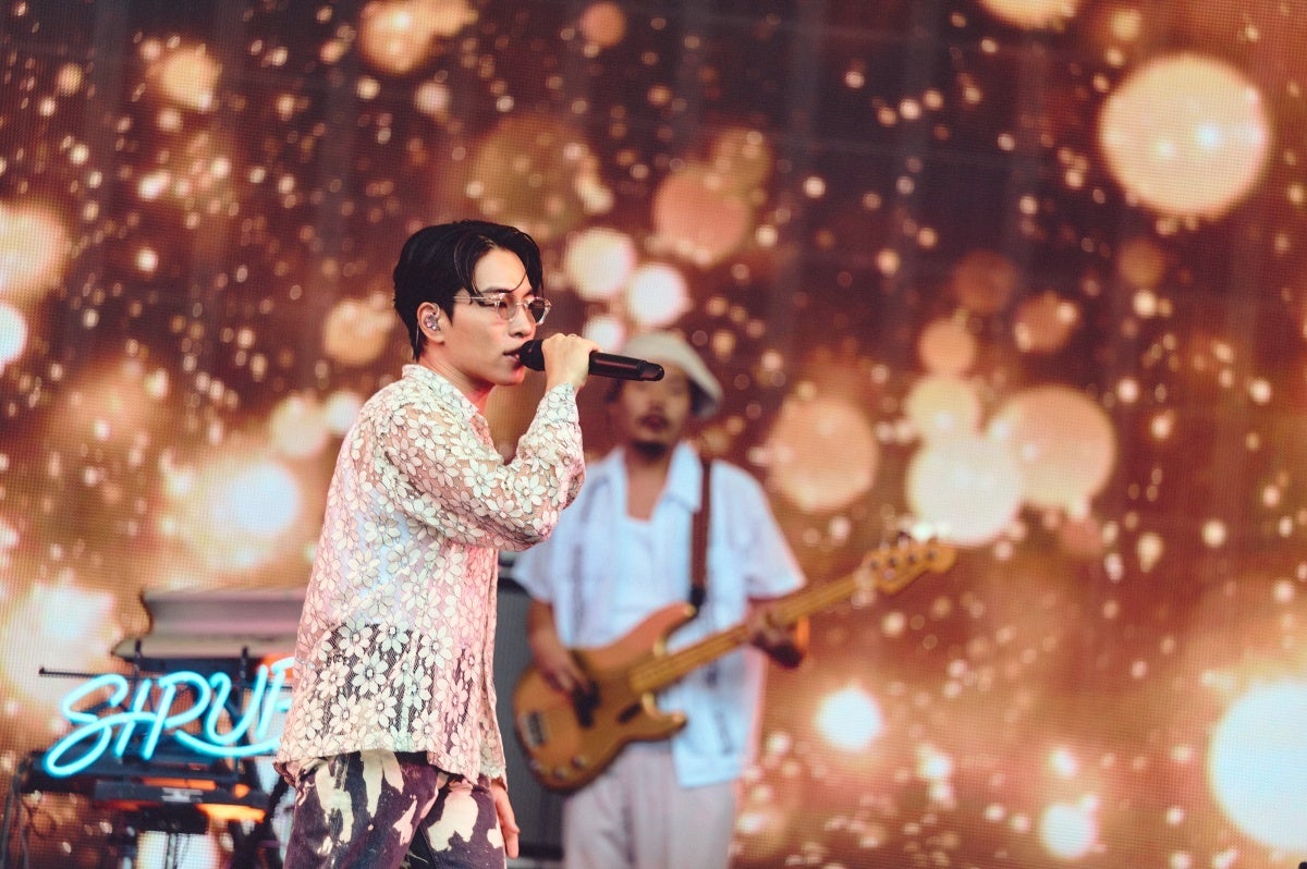 昼下がりの心地良い空気の中登場したR&BアーティストSIRUPは、スタートからグルーヴィーなバンドサウンドと圧倒的なボーカルで一気に会場を惹きつけました。続々と観客がステージ前に引き寄せられていく中、「みんな音楽は好きですか?」「晴れ男なので晴らしました」と自然体で観客とコミュニケーションを取りながら、「LOOP」など人気曲をライブアレンジでパフォーマンス。途中、「久しぶりにこの曲を歌います!」とYonYonを呼び込み、コラボ曲「Mirror(選択)」を披露しました。観客の熱気はラストの「Do Well」で最高潮に達し、思い思いに踊りながら最高のサウンドを楽しんでいました。