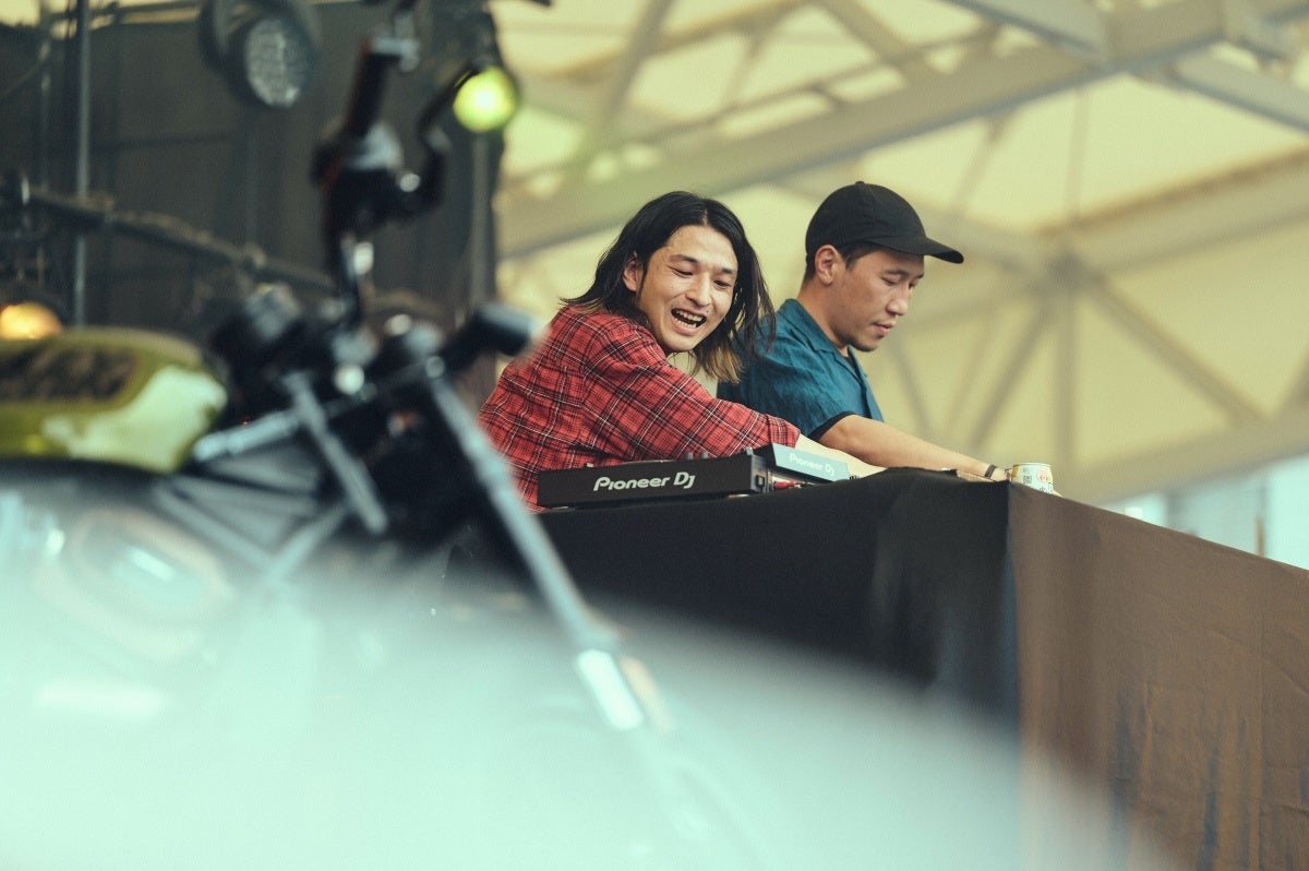 各ブースが来場客で賑わいだした昼過ぎ、ハウス/ディスコの新しいムーブメントを開拓するYOSA & TAARが登場。のっけからVan Halen「Jump」をドロップし意外なロックセットを展開しました。ハーレーライダーの心を掴みつつ得意とするハウス、ディスコへとグルーヴを繋ぎ、往年の名曲からヒット曲のリミックスまで多幸感ある選曲で観客を魅了。ラストはテッパンの「Perfect Fire」で会場が一体感に包まれました。