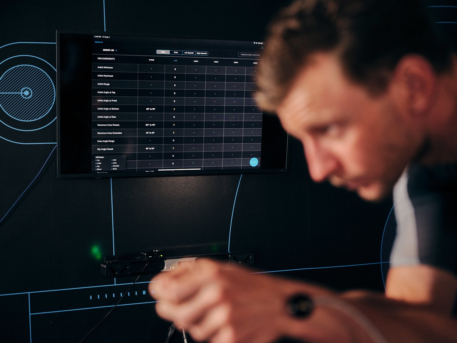 パーソナライズド・レンジの作成に欠かせないトラックド・ アセスメント(モーションキャプチャーを使用した身体測定)は、iPad Pro®の最新テクノロジーを採用し、乗車姿勢での身体の動きや可動域の制限を詳しく分析できます。