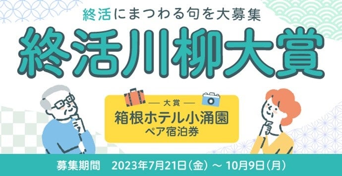「終活」を自由な発想で捉え、ポジティブな形で表現した川柳の投稿を募集します。大賞受賞者には箱根ホテル小涌園ペア宿泊券をプレゼントします。