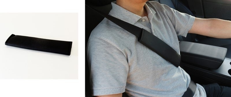 Tesla Model3/ModelYの純正シートの質感やカラー、形状に合わせてデザインされたシートベルトパッド。