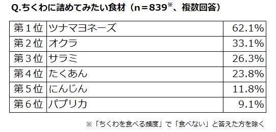 ちくわを週1回以上食べると回答した人は26.6% 4人に1人という結果に