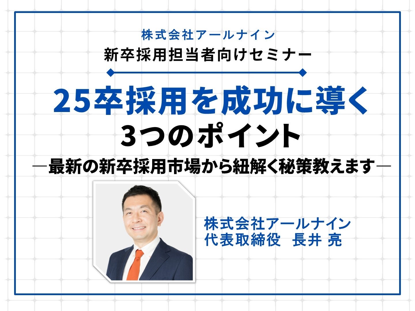 【25卒採用Webセミナー】9/8、9/12 最新の市場動向と成功に導く3つのポイント~2000社以上の相談に乗った採用のプロ・当社代表、長井亮が登壇~