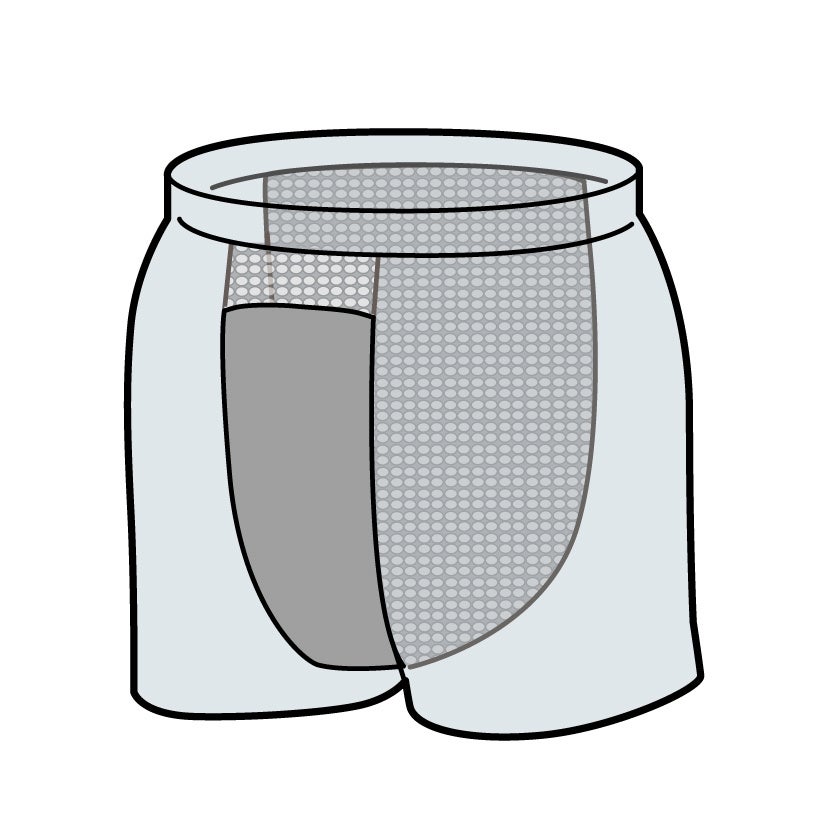 軽失禁用トランクスには見えないデザインで、旅行の際や温泉などの脱衣所でも人の目を気にせず使用することができます。