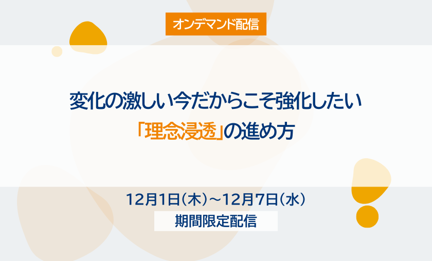 【12/1(木)~ 12/7(水)限定配信】「サステナビリティ」「ニューノーマル」・・・変化の激しい今だからこそ強化したい「理念浸透」の進め方