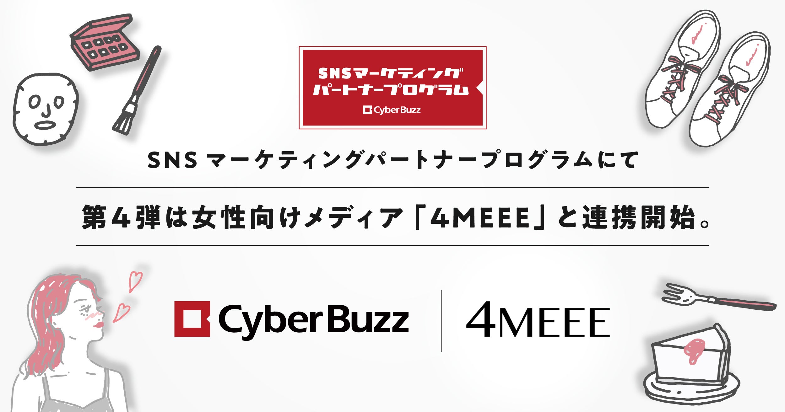 ソーシャルメディアマーケティング事業を展開する株式会社サイバー・バズ(本社:東京都渋谷区、代表取締役社長:髙村彰典)は、当社で展開している「サイバー・バズSNSマーケティングパートナープログラム」にて、第4弾は女性向けメディア『4MEEE(フォーミー)』(https://4meee.com/)を運営する4MEEE株式会社(所在地:東京都新宿区、代表取締役:尾久一也)と連携開始いたします。