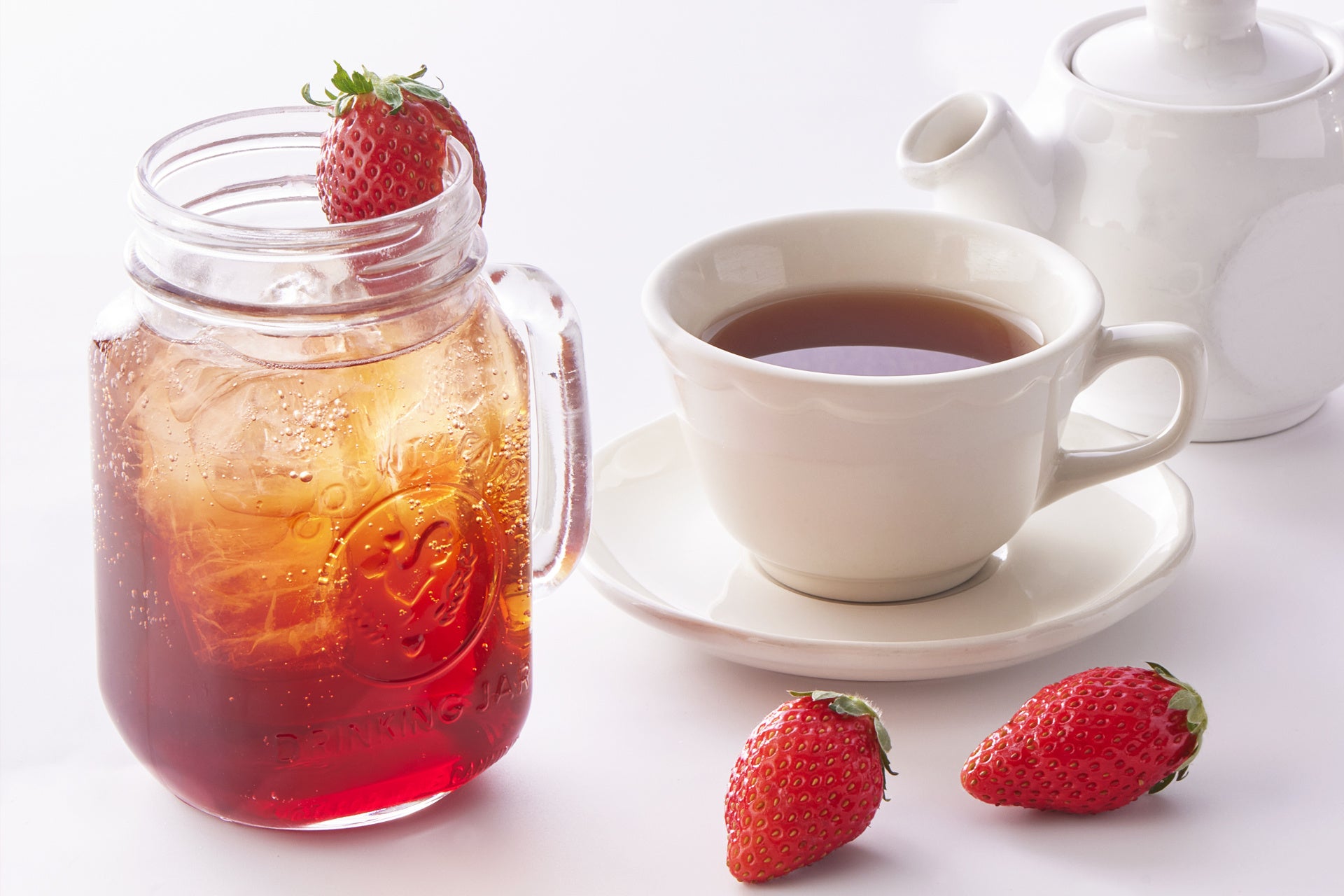 【商品名】 ストロベリー ティーソーダ ※画像左 ストロベリー ホットティー ※画像右