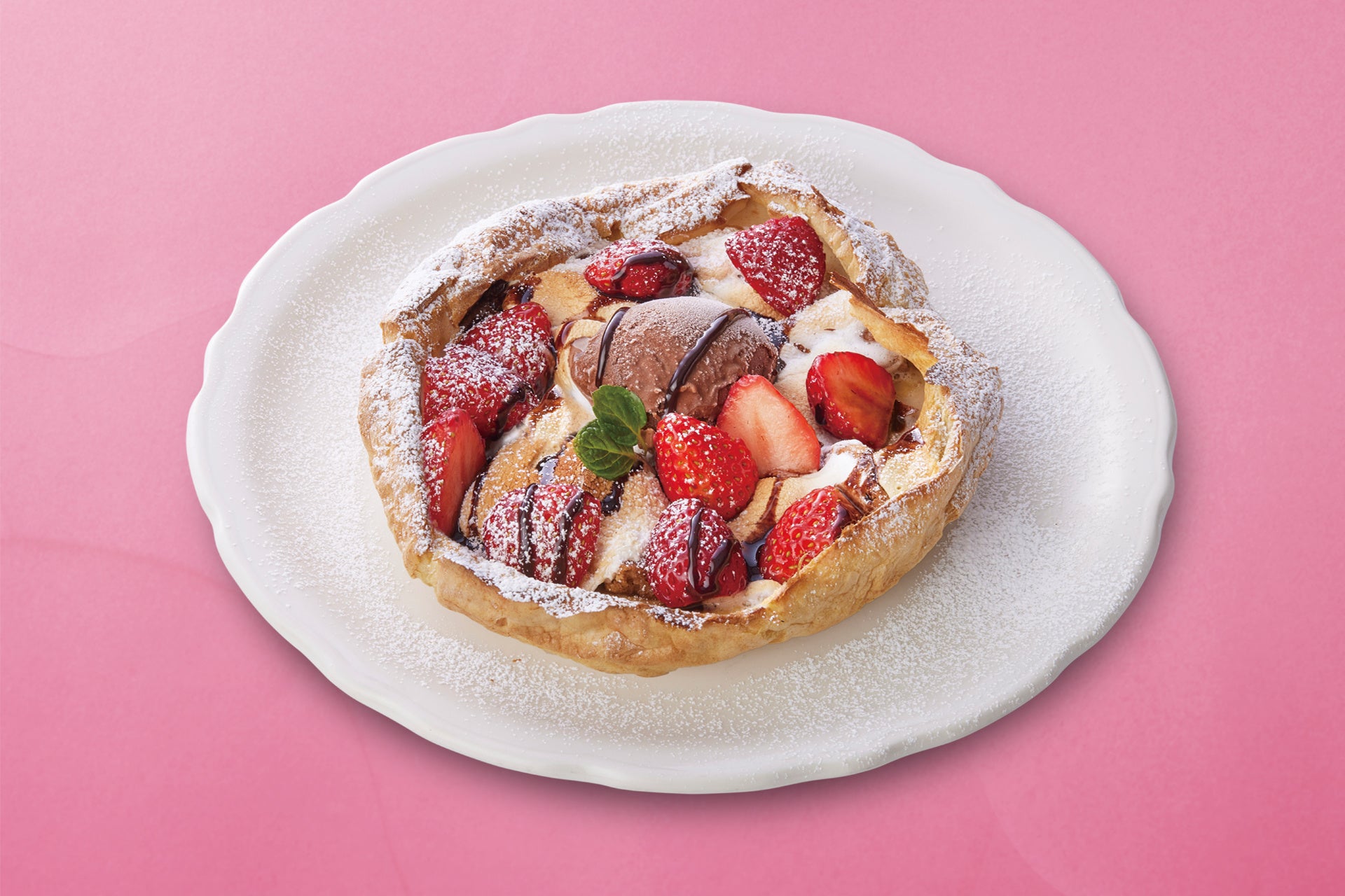 サクサク、ふわふわ、とろ〜り。が一度に味わえる。新食感のダッチベイビー!濃厚なスモアの甘さと、ストロベリーの酸味のバランスが絶妙。くせになる美味しさです。