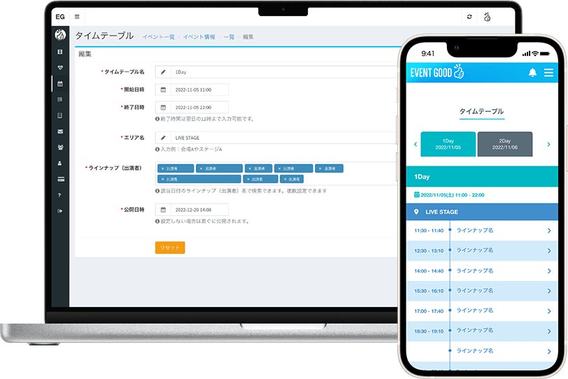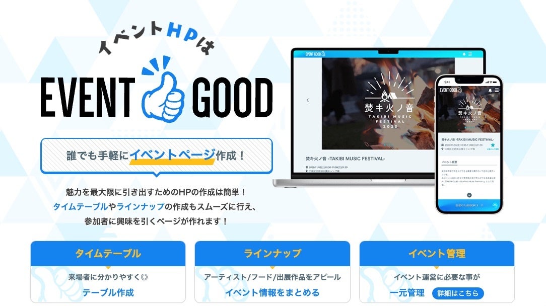 イベント主催者必見!「誰でも簡単にリッチなイベントページ作成」タイムテーブル/ラインナップをフォーマット入力の簡単操作であっという間に。【EVENT GOOD】をリリース!イベント管理システムも充実